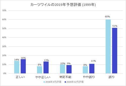 以前の2つの記事で、私は1999年時点でのカーツワイル氏による2009年、2019年の予測を検討しました。 全体を通して予測の印象を述べると、以下の通りです。 コンピュータ関連のテクノロジー自体に関する予測は先見の明がある テクノロジーの使われ方に関する…
